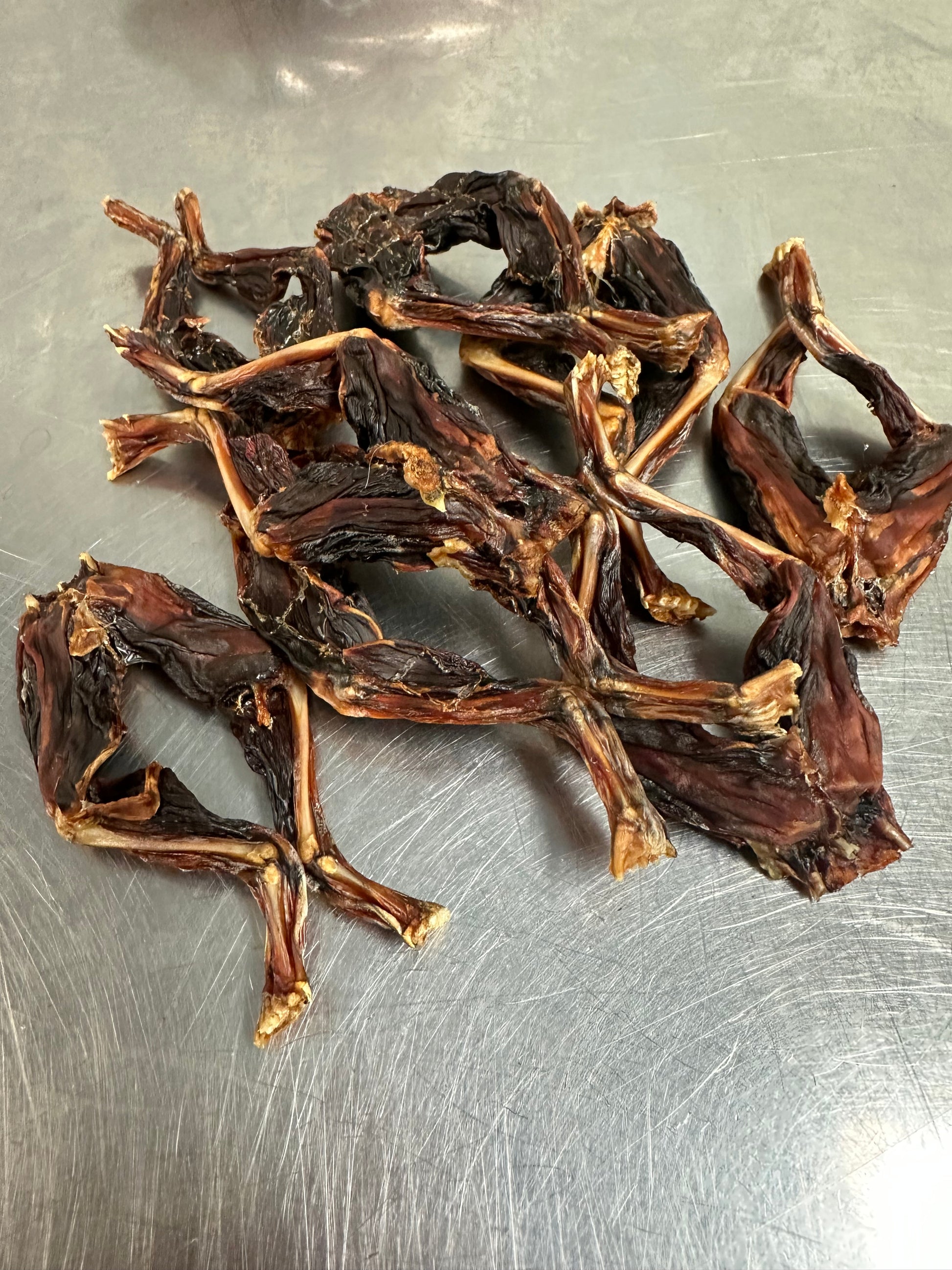 These dehydrated frog legs are a natural, high-protein treat designed specifically for dogs. Carefully processed to preserve essential nutrients, they support muscle health and provide a novel protein source that can help reduce food sensitivities. Their firm texture encourages dental health by promoting chewing, while their simple ingredient profile ensures a clean, healthy snack for your pet. Ideal for training or as an occasional reward, these frog legs offer a unique option in your dog’s diet.